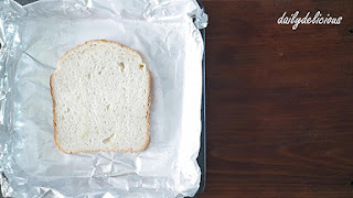 Sprinkle the foil with rice bran oil, and place bread slice over the oil.