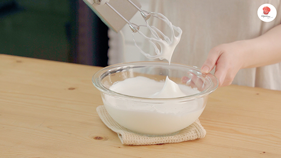 Beat the egg white until foamy, and add the sugar (B) gradually.