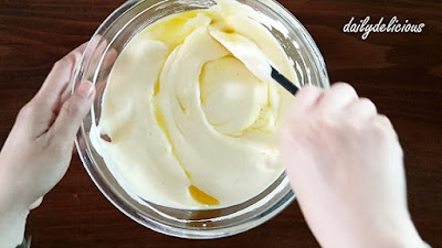 For this yummy roll cake, you have to prepare it a day ahead, as the filling need enough time to become cold, or you will find it hard to beat it until firm peaks formed.