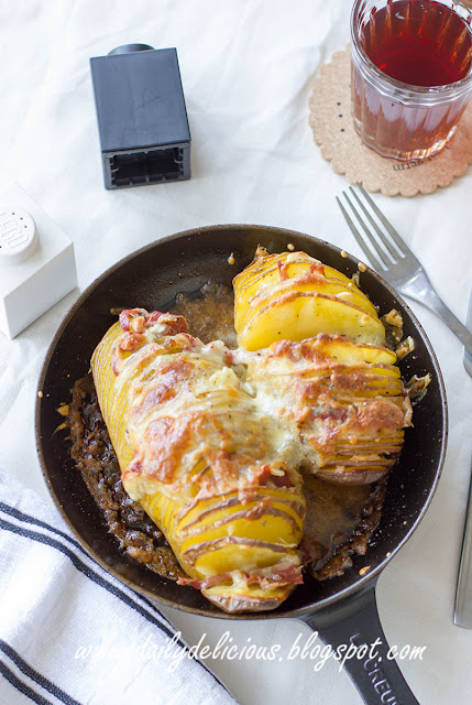 Hasselback Potato with Pancetta and cheese